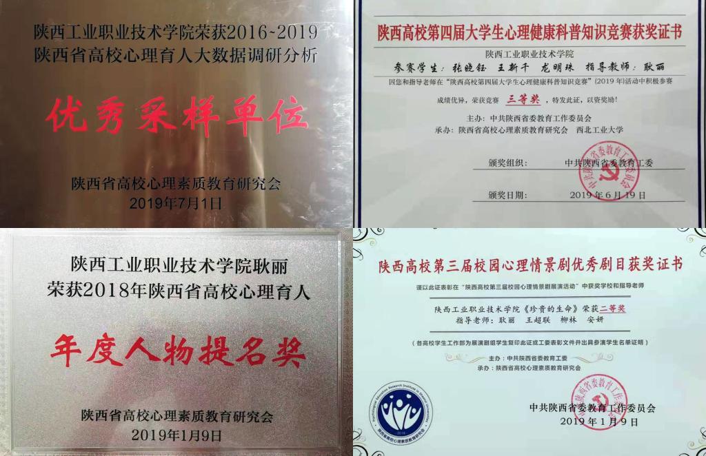 此外,耿丽同志获“2018年陕西省高校心理育人年度人物提名奖”,航空工程学院王嘉明、信息工程学院高一航同学分获“2018年陕西高校百佳心理委员荣誉奖”。我院选送的5个心理微课、团体心理辅导、微电影等还入选了“陕西省高校心理育人百家慕课”。