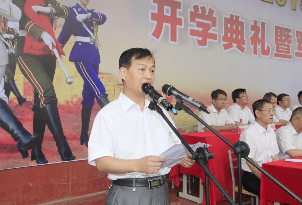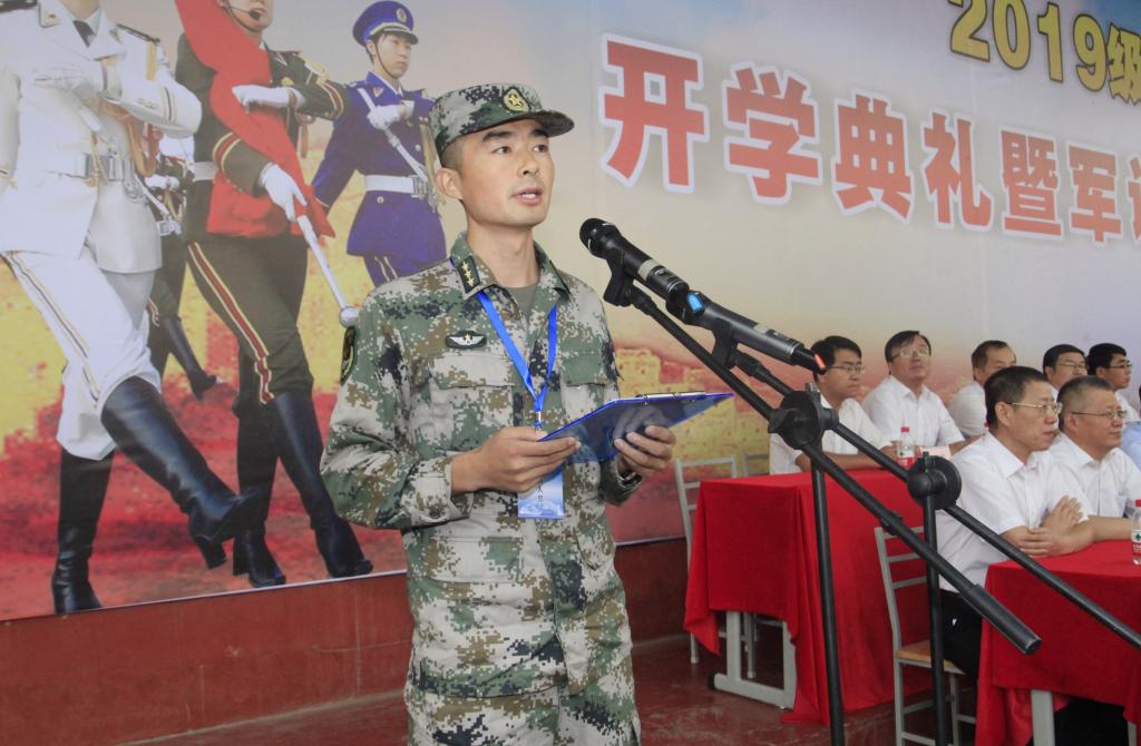 在教师代表吉武庆和在校生代表黎淼、新生代表孙小春发言后,承训部队首长、军训团团长李凯本讲话。他希望同学们珍惜军训机会,在接下来的军训中,服从命令,听从指挥,磨练心志,为以后成为祖国的栋梁之材打下坚实的基础;希望教官们科学组训、正规施训,严格要求,确保质量,真正使参训的同学们受益匪浅,终生难忘。