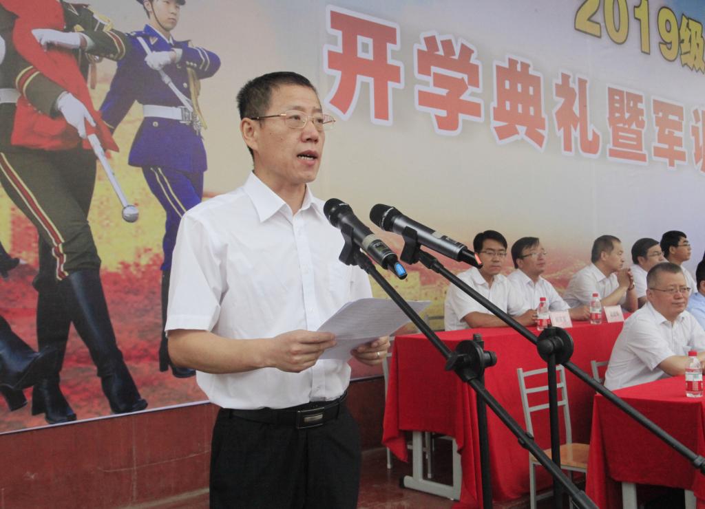 惠朝阳同志在致辞中对2019级新生表示热烈欢迎和衷心祝贺,向学生家长和老师们表示诚挚敬意,向全体参训教官表示衷心感谢。他表示,大家今天相聚在此,既是一种缘分,也是一种信任。学院建校69年来,获得的成绩和荣誉数不胜数,“陕工力量”已然成为陕西乃至全国高职教育的新名片。能在陕工职院深造,是大家的幸运;就读陕工职院,你们的选择是正确的。