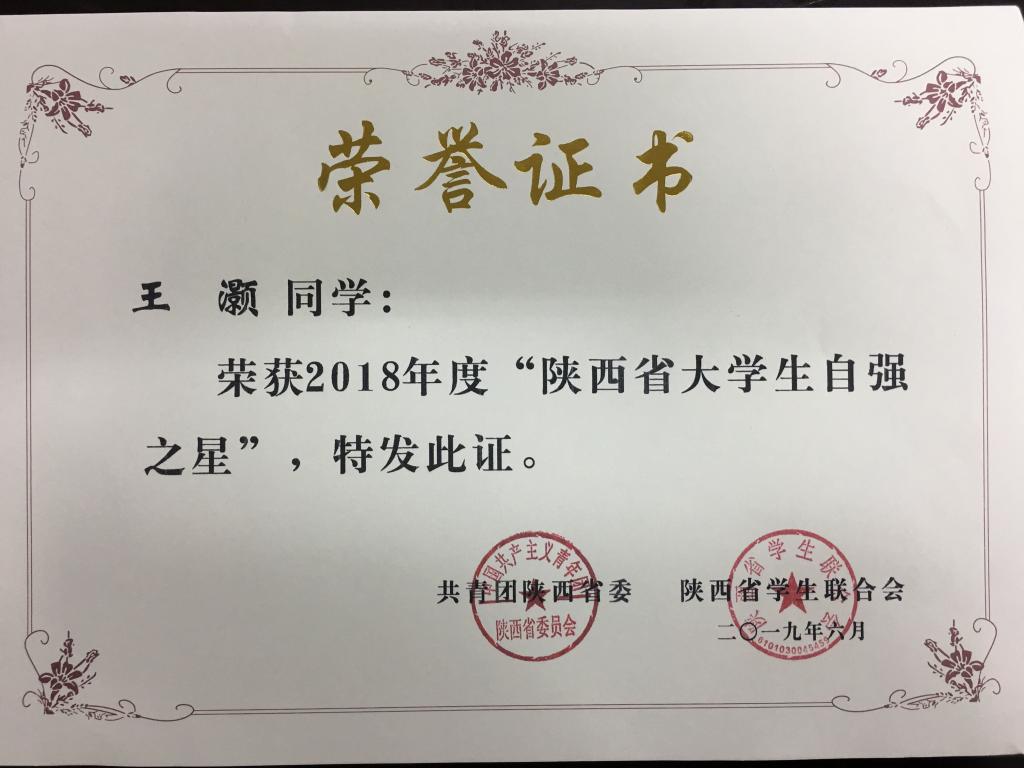 近日,团省委、省学联公布了2018年“陕西省大学生自强之星”获奖名单,经个人申报、院系两级遴选推荐、网络投票及团省委评审,我院机械工程学院王灏、材料工程学院张斌两位同学脱颖而出,荣获“陕西省大学生自强之星”荣誉称号。