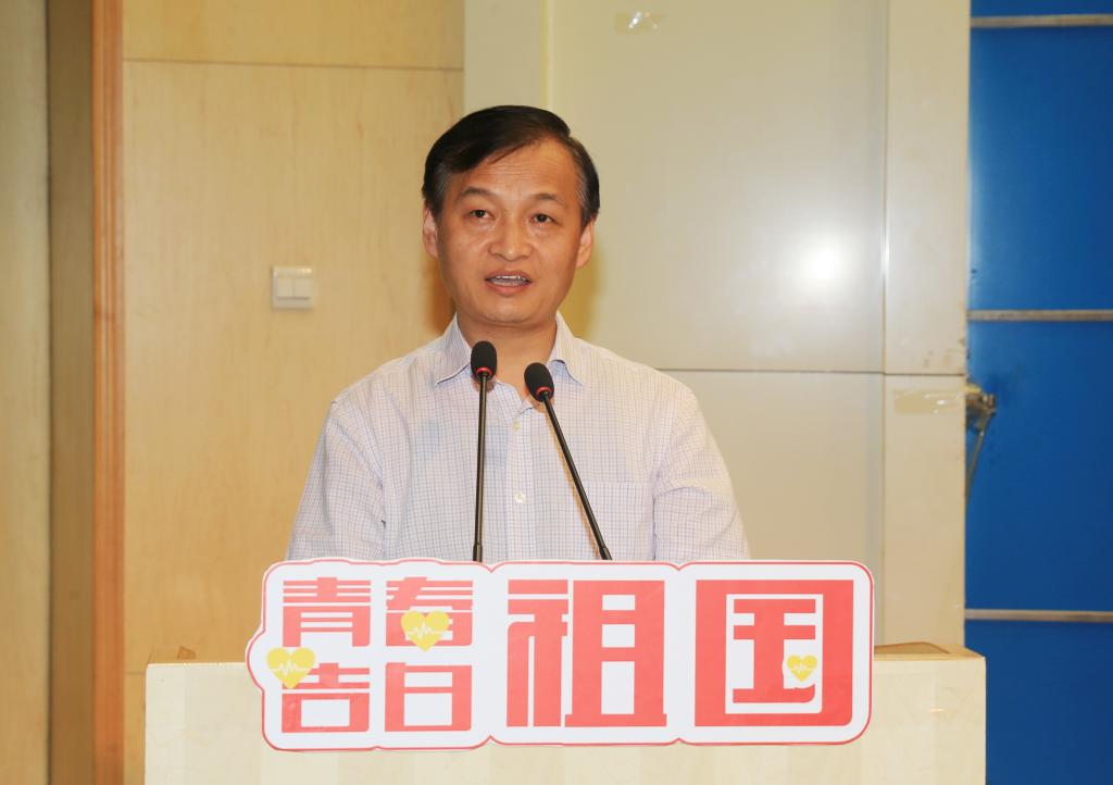 活动在庄严的国歌声中拉开帷幕,全场师生一同观看了《青春为祖国歌唱》视频。学工部部长郝军宣读了《关于庆祝中华人民共和国成立70周年,开展“青春告白祖国”主题系列宣传教育活动的通知》。党委副书记贺天柱在讲话中指出,在中国共产党的领导下,中国实现了从“站起来”“富起来”到“强起来”的历史飞跃。当前,新时代中国青年正处在中华民族发展的最好时期,既是追梦者,也是圆梦人,以激情和理想不懈追梦,以奋斗和奉献勇于圆梦,是时代的呼唤,是人民的期盼,更是以青春告白祖国的生动诠释。贺书记希望同学们爱国爱党,听党话、跟党走,胸怀忧国忧民之心、爱国爱民之情;珍惜韶华、练就本领,注重把所学知识内化于心,做到博学多识、融会贯通;勇于担当,珍惜时代机遇,肯吃苦,正确对待得失;以本次活动为契机,向先进学、向榜样学,把个人成长坐标与国家发展轨迹统一起来,用激昂的青春和扎实的学识建功新时代、向伟大祖国告白。