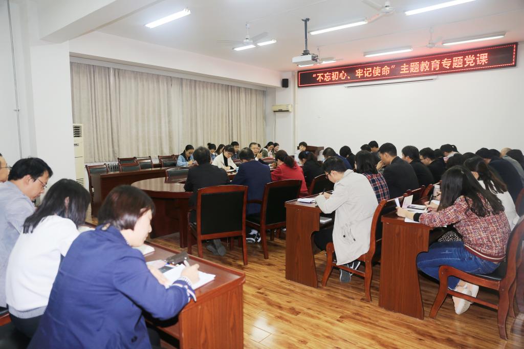 在上党课前,党总支书记陈昊平对商贸与流通学院“不忘初心,牢记使命”主题教育开展情况、存在的问题和下一步打算向参会人员做了汇报。惠书记对党员“不忘初心,牢记使命”主题教育应知应会知识进行了现场测试。