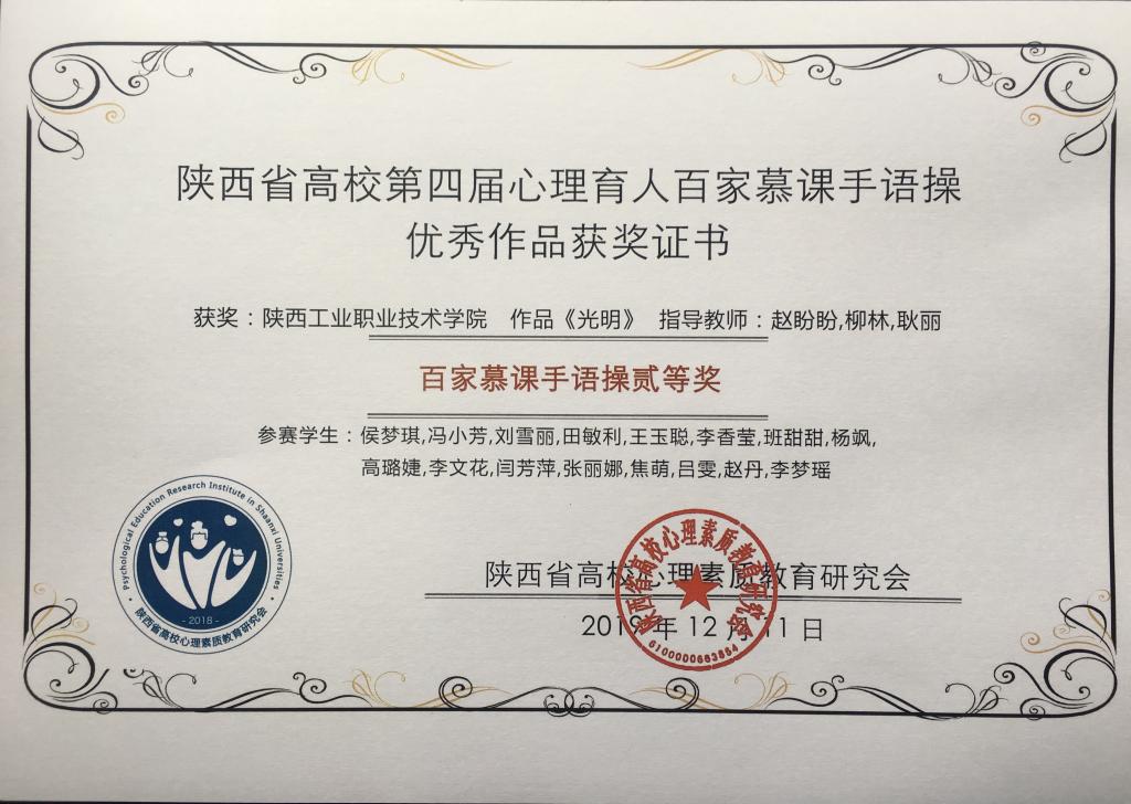 近日,第四届陕西省高校心理育人百家慕课学生作品展评落下帷幕,由星空网页版登录入口学生处心理咨询中心推荐的财经与旅游学院刘思萌等三名同学参演的《心理起航》荣获第四届陕西省高校心理育人百家慕课心悦读特等奖,由侯梦琪等十六名同学参演的《光明》荣获第四届陕西省高校心理育人百家慕课手语操二等奖,马文燕、赵盼盼两位老师分别获得优秀指导教师奖。