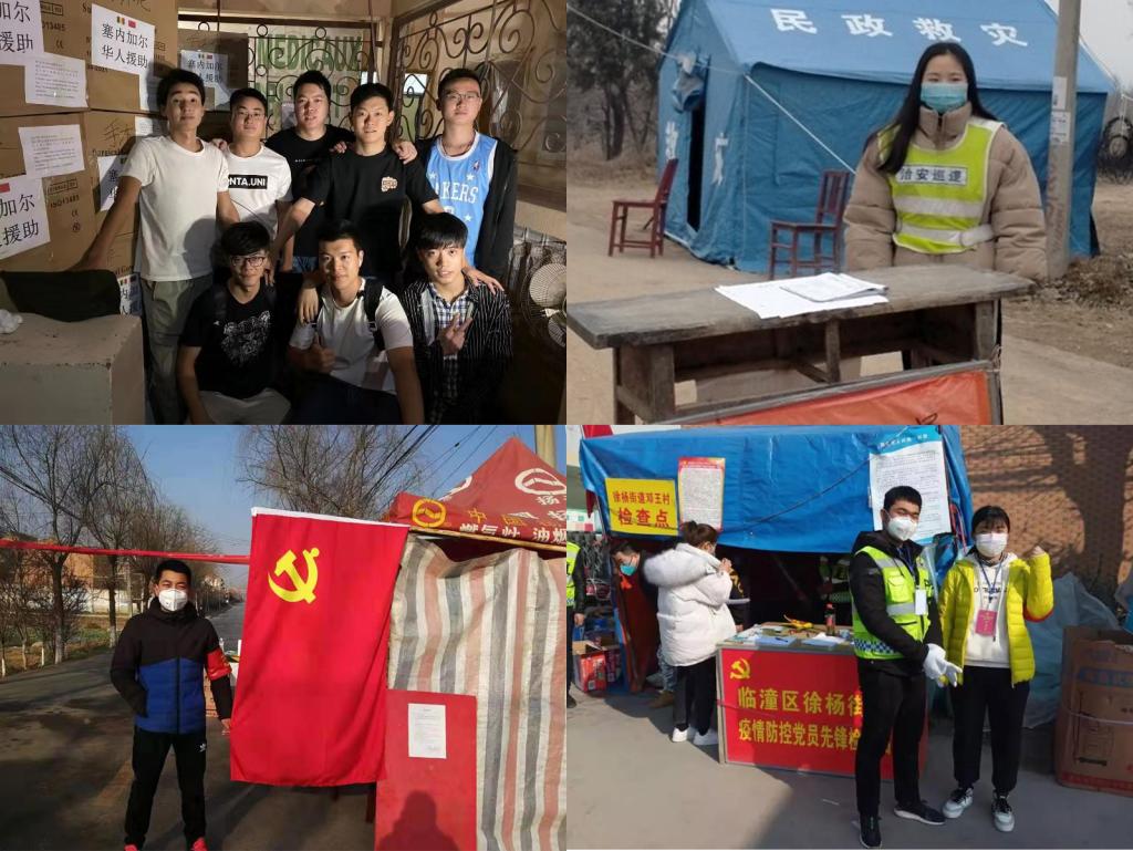 通过及时有效的教育引导,同学们进一步坚定了对中国共产党为什么能、马克思主义为什么行、中国特色社会主义为什么好的认识理解,以实际行动做出响亮回应:远在非洲塞内加尔工作的财经与旅游学院沈鑫豪同学,时刻关注着国内疫情,积极参与塞内加尔华人华侨和中资企业的医疗物资募捐活动,尽其所能,贡献自己的一份力量。截止目前,第一批价值15.6万余元的医疗物资已送达湖北疫情防控一线;在中铁广州局山西项目部工作的土木学院刘函同学,主动担纲企业的疫情防控宣传员,每日向员工及群众宣传防控知识,对进出人员登记、测量体温;航空学院杨帆同学用自己的实习工资购买了10箱方便面和4箱饮料赠送给家乡一线的防疫人员。
