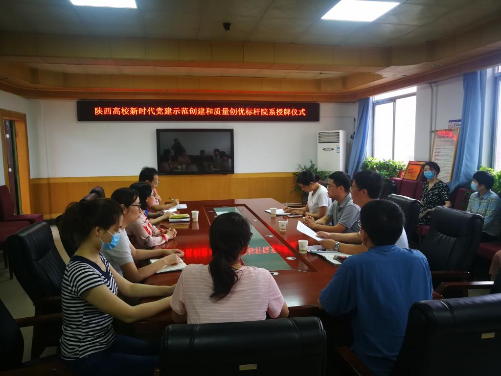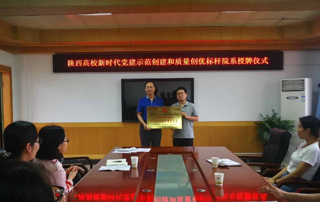 会上,组织部部长王超联同志宣读了《中共陕西省委教育工委关于公布第二批陕西高校党建工作示范高校、标杆院系、样板支部培育创建名单的通知》文件并对“双创”工作提出了具体要求。党委副书记田昊向财经与旅游学院党总支颁发“陕西高校新时代党建示范创建和质量创优标杆院系”奖牌。财经学院党总支书记孙继龙作表态发言,他首先感谢学院领导、上级党组织对财经学院党建工作的支持和肯定,并简要汇报了前期开展党建“双创”工作的情况以及后续具体实施方案,表示在两年创建期内,按照相关要求,克服困难,扎实工作,以一流业绩创出品牌形成特色。