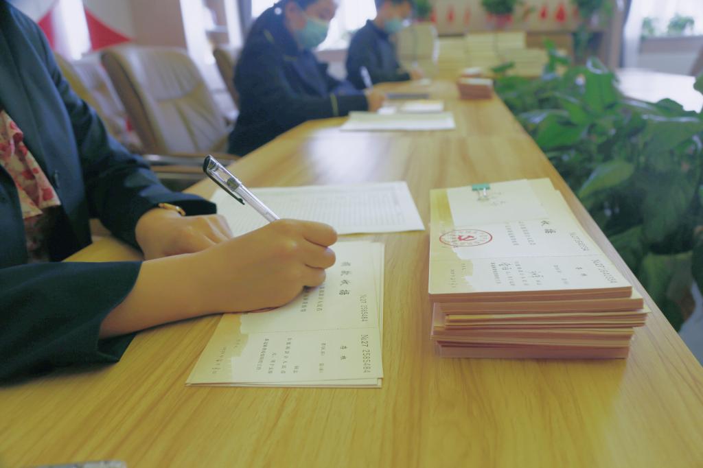 党委书记惠朝阳同志填写特殊党费捐款收据