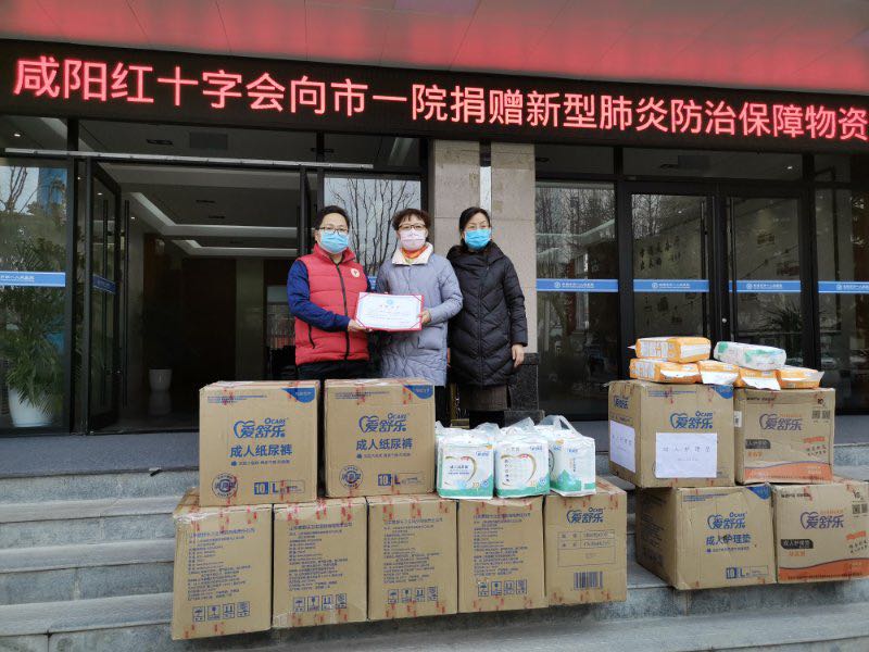谢静老师向咸阳市红十字会捐赠防疫物资