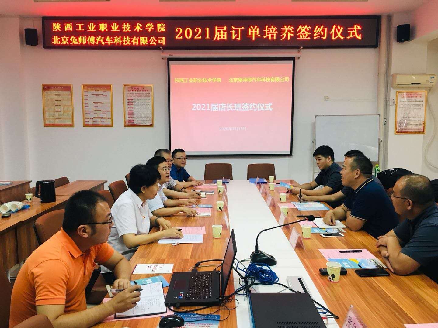 7月13日下午,我院与北京兔师傅汽车科技有限公司在崇文楼五楼汽车学院会议室举行订单班培养签字仪式。北京兔师傅汽车科技有限公司总经理宋烈进、陕西省区总经理蒋福超等企业代表,学院党委副书记田昊、校企合作处、汽车学院主要负责同志参加会议。会议由汽车学院党总支书记高亚宁主持。