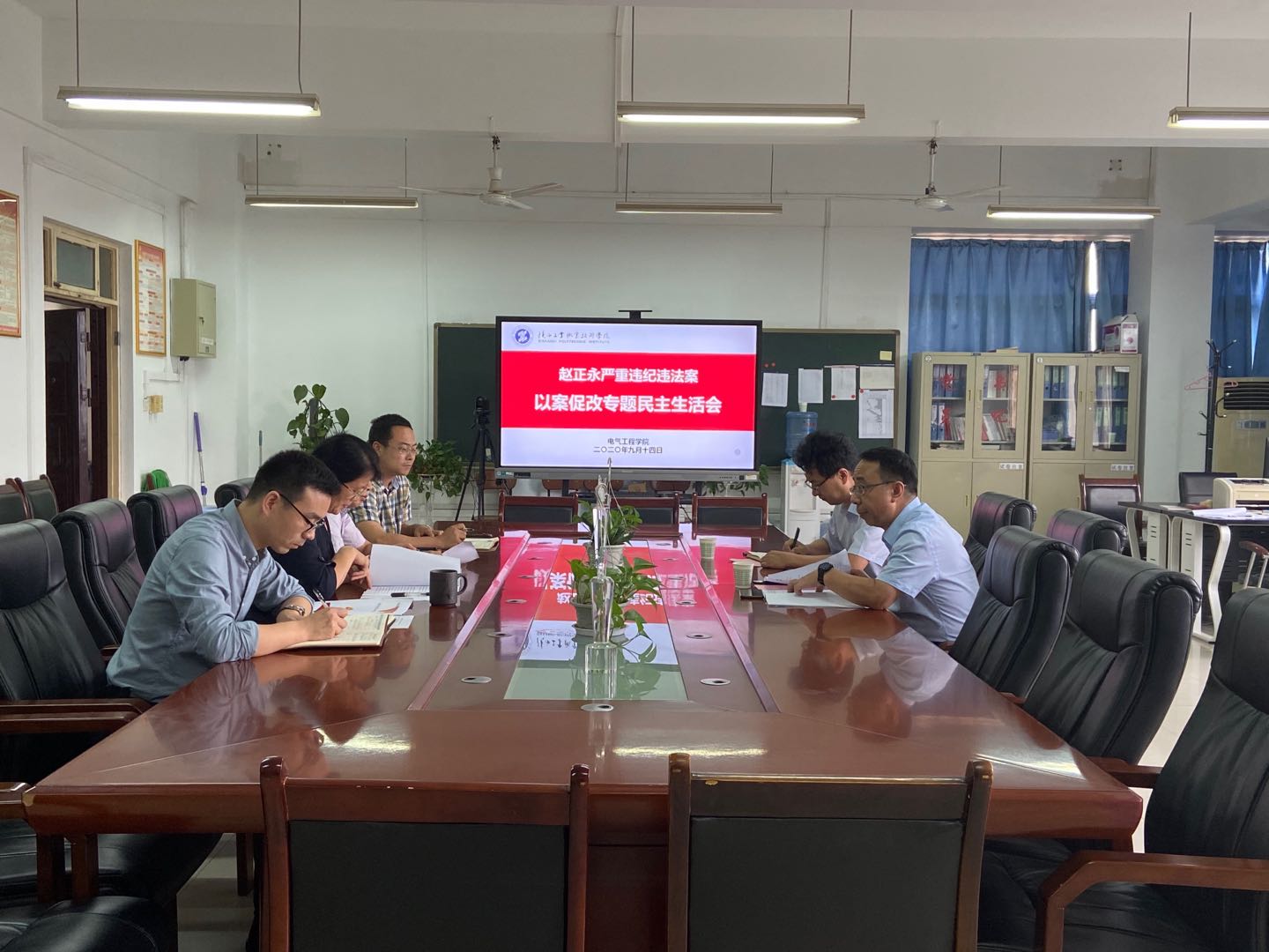 9月14日下午,电气学院党总支在行知楼A502召开赵正永严重违纪违法案以案促改专题民主生活会。学院党委副书记、纪委书记康强,党委学工部部长、学生处处长郝军到会督导,电气学院党总支委员参加会议,本次会议由党总支书记杜云主持。