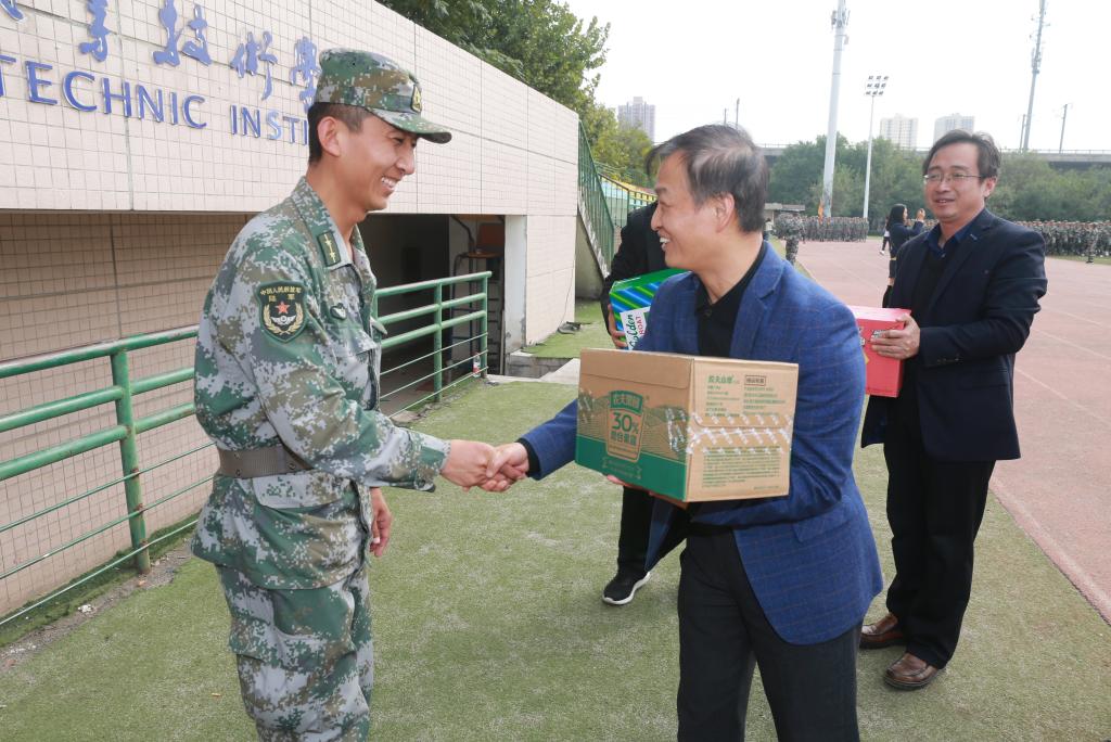 10月20日下午,党委副书记贺天柱代表学院亲切慰问了我校2020级新生军训教官,部分二级学院党总支书记、学生处等部门负责人一同前往慰问。