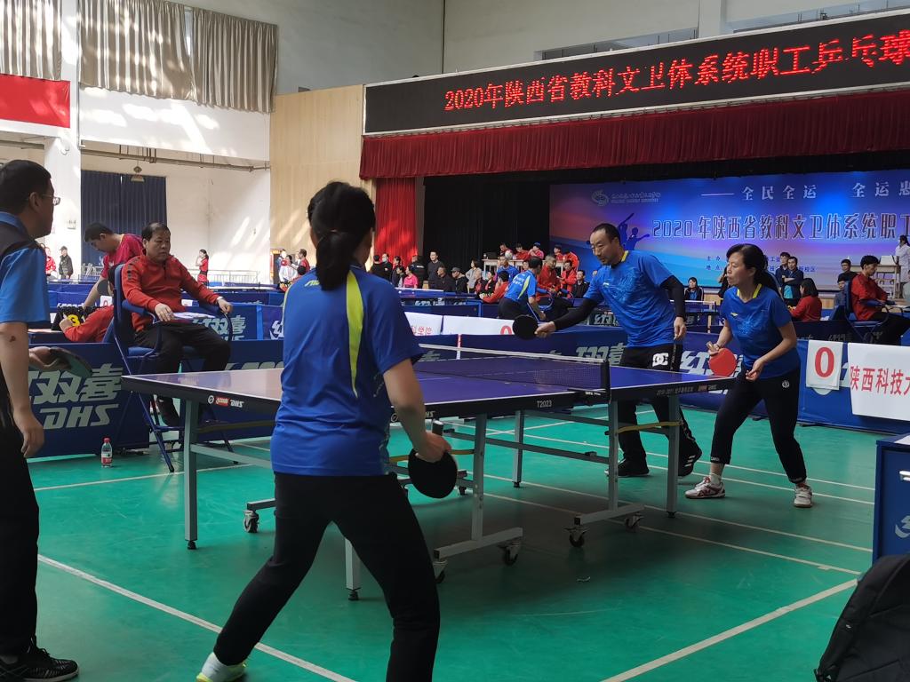 2020年陕西高校教职工乒乓球团体比赛以“全民全运,全运惠民”为主题,来自全省教科文卫体工会系统55个单位参赛队的400多名领队、教练员和运动员参加了比赛。
