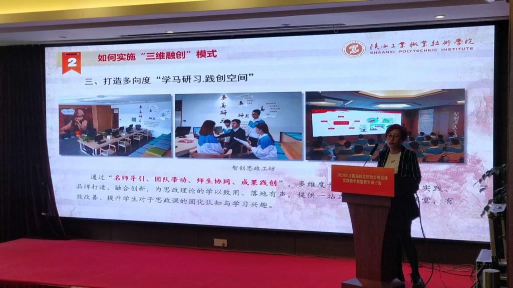 王金辉院长以《“校内研学+VR/AR体验+工坊创练”的三维融创式思政课实践教学模式》为主题进行了交流发言,她谈到,在当前中央持续强化思政课建设的要求下,我院立足校本特色和“双高”需求,聚焦思政课教学短板,积极探索思政课实践教学赴校外开展研学难度大的破题之策,力推思政课实践教学向研练创拓展、向微体验延伸,积极助力培养“爱国有情”“强国有志”“报国有行”的新时代红色工匠。发言获得了与会点评专家和参会人员的充分肯定,认为我院立足职业教育视角,紧跟前沿又凸显特色,是创新开展高校思政课实践教学的有益探索与实践。
