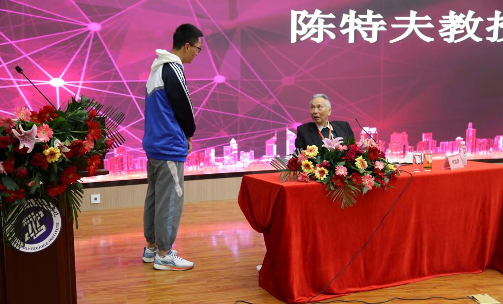 此次报告会陈教授结合个人的艰苦创业历程,为同学们分享了创业之路上的梦想、超越与传承。作为一个教龄长达31年的老教授,陈教授认为育人不能少了“进取心、责任心、道德心”,这样才会有梦想;学生在校期间,还要学一点实际本领,艰苦创业精神,动手能力,解决实际问题的能力。最后陈教授与师生进行了现场互动,用幽默的语言引来师生们阵阵笑声,同时也让同学们认识到,作为新时代的青年,要学以致用,掌握真才实学,发扬艰苦奋斗的精神,一定要实干,才能实现梦想。