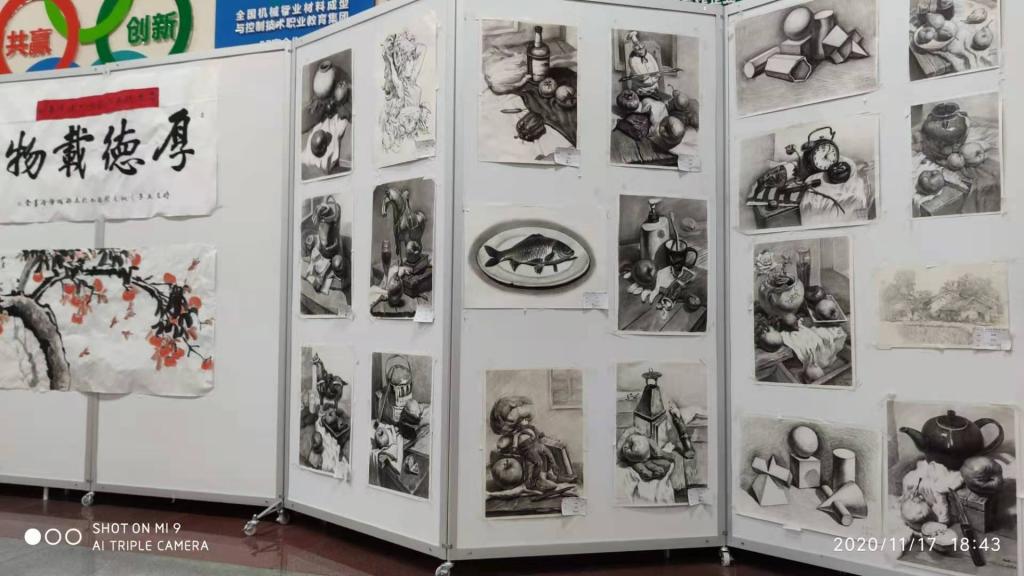 本次书画作品展从全院学生中征集书法、绘画作品,内容包括软笔、硬笔书法,素描、水彩、国画等多种表现形式。水彩风景惟妙惟肖,水墨牡丹繁盛娇艳,素描静物体现了高超的造型功底,书法作品隶书、楷书、行书等蕴含着中国文人风骨。所展的每一幅作品,都诠释了同学们对母校的热爱,对学院美好未来的憧憬。他们或挥毫书写校训,或泼墨描绘历史,或用画笔点缀爱心,或用色彩扮靓青春,或随心所欲浪漫涂鸦,或笔走龙蛇勾勒线条。