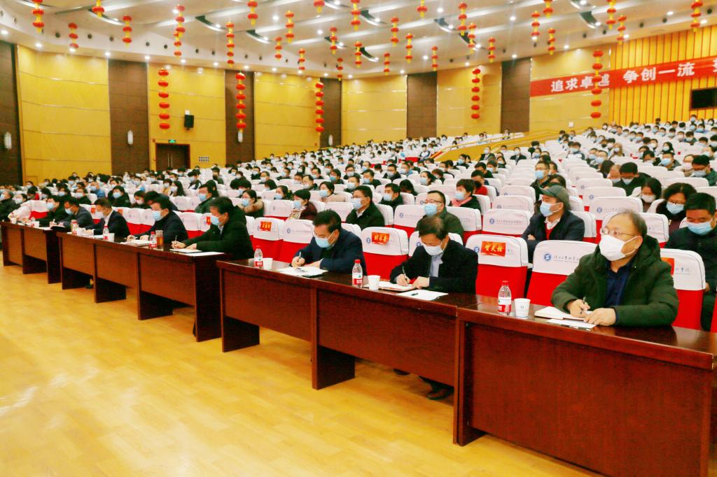 我校领导班子全体成员、科级以上干部和师生代表500余人参加会议