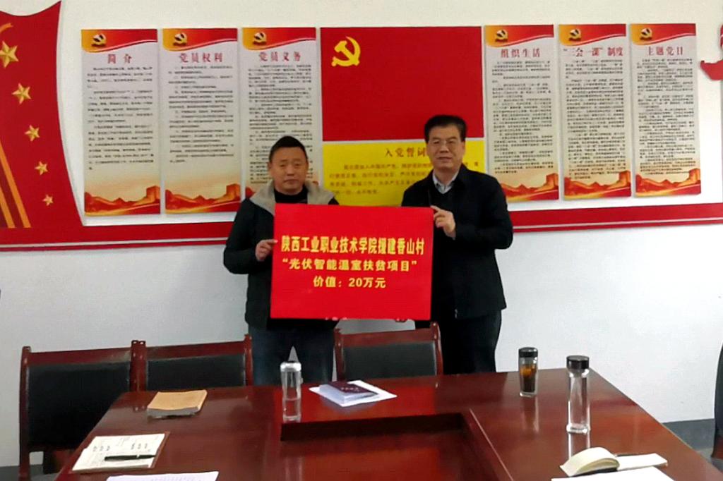 会上,刘永亮院长首先代表学院向佘甲喜副书记捐赠价值20万元的“光伏智能温室科技扶贫项目”,并为“星空网页版登录入口、江苏省农业科学研究院驻香山村光伏智能温室科技示范站”授牌。我院驻村工作队队长、香山村第一书记刘智鑫同志就2020年迎接国家脱贫攻坚普查工作开展情况、工作完成情况及今后设想等方面情况进行了汇报;香山村支部书记马金柱就我院捐赠香山村药材种植企业和农村合作社扶贫项目实施进展及发挥作用等基本情况进行了汇报;流水镇党委副书记佘甲喜就如何管好、用好、积极发挥陕西工院捐赠香山村“光伏智能温室科技扶贫项目”效能提出了具体要求,对我院多年来对香山村的持续帮扶表示感谢,希望学院一如既往的帮扶和支持香山村下一步乡村振兴建设。
