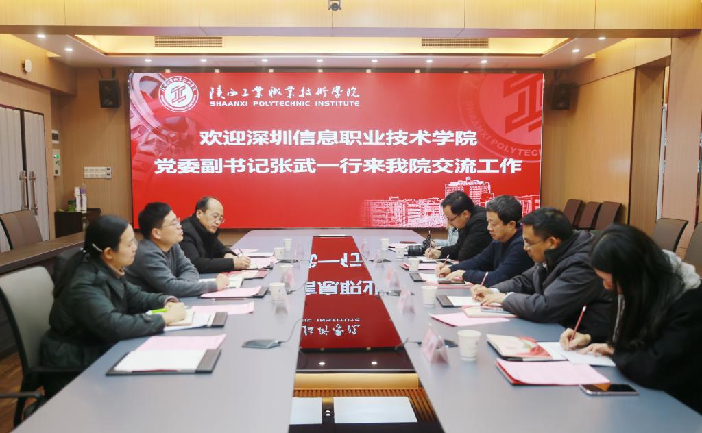 会上,田昊副书记对深圳信息职业技术学院领导一行的到来表示热烈欢迎,并介绍了我院历史沿革、发展现状、党建工作和校园文化建设等方面的情况,分享了我校在意识形态工作、思想政治工作、网络舆情工作、制度建设、对外宣传、校园文化活动等方面的经验和体会。黎炜部长就宣传部的机构设置、人员构成、宣传工作的开展、宣传阵地的建设与管理等方面作了交流。在听取我院情况和相关工作介绍之后,张武副书记对我院的热情接待表示感谢,对我院推进“双高”校建设及各方面发展取得的成就表示祝贺,他表示,陕工职院是中国职业教育改革的引领者,一直在探索中国职业教育模式的路上不断前进,陕工职院的经验对深圳信息职院的发展具有重要作用。张武副书记简要介绍了深圳信息职业技术学院的基本情况,并希望双方能进一步加强党建工作和宣传工作的交流与合作。