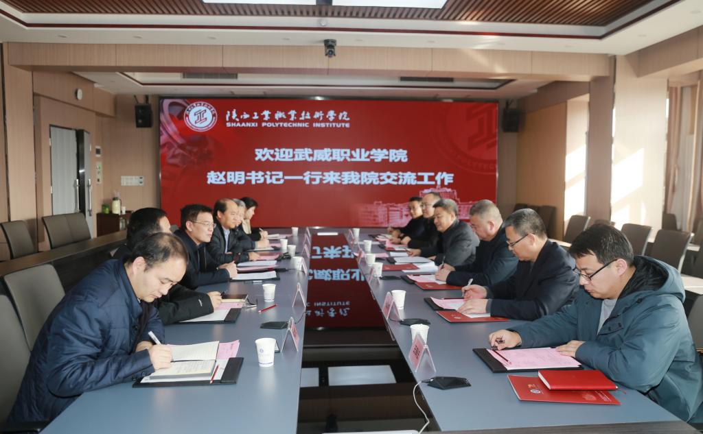 1月11日下午,武威职业学院党委书记赵明一行6人来我院交流工作。学院院长刘永亮、副院长梅创社和“双高”办公室、就业处、教育教学质量管理中心、教务处相关负责同志在崇文楼九楼第一会议室与来宾进行了座谈。座谈会由副院长梅创社主持。