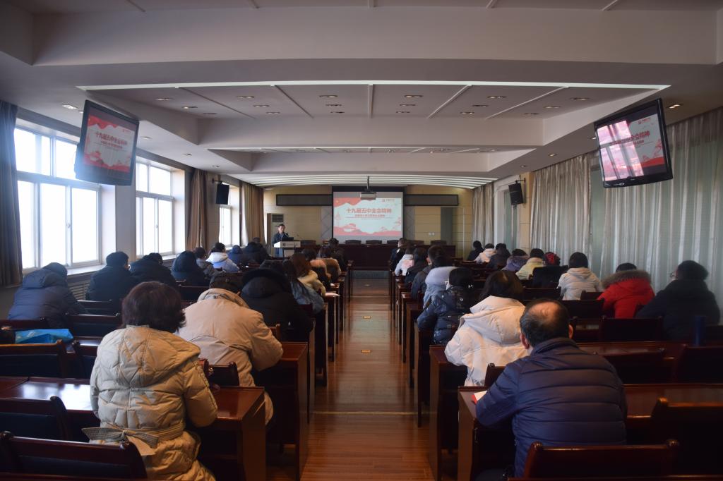 贺天柱副书记围绕“党的十九届五中全会基本概况”、“党的十九届五中全会内容重点解读”、“党的十九届五中全会公报主要关键词”、“学习贯彻全会精神几点意见”等四个方面,对党的十九届五中全会精神进行全面宣讲和深入解读。