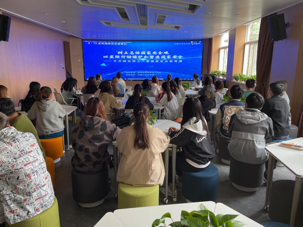 北京师范大学教授、国家安全与发展战略研究院执行院长汪明,2020年“最美高校辅导员”、哈尔滨工程大学核科学与技术学院党委副书记刘铁,2020年“最美大学生”、北京航空航天大学飞行学院2018级本科生余汉明共同为全国师生讲授《树立总体国家安全观,以实际行动维护和塑造国家安全》,在场的老师和同学们通过“中国大学生在线”官微进行“全国高校学生国家安全知识线上竞答”、线下讨论,进一步理解总体国家安全观的内涵。