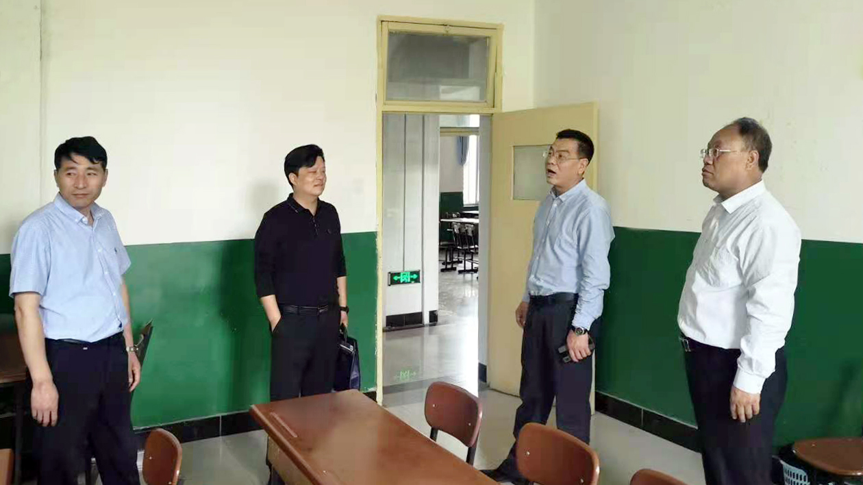 5月6日下午,校长刘永亮在副校长刘清陪同下,深入到各教学楼教室,检查指导后勤教学服务保障工作。