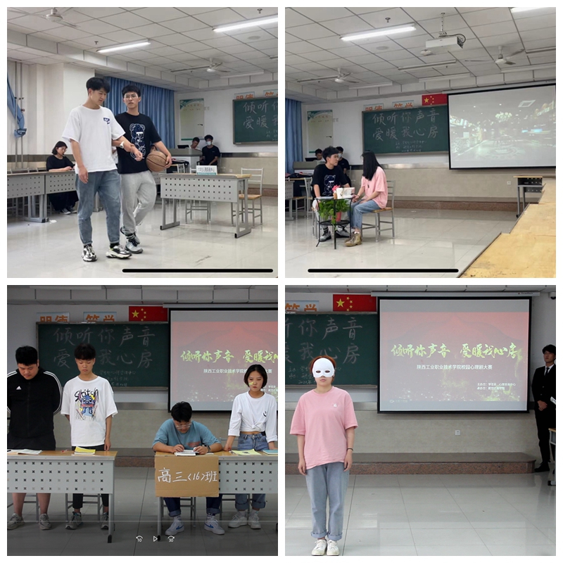 经过前期宣传准备,各二级学院组织选拔,共有11支队伍参加校级决赛,涉及大学生环境适应、自我管理、学习成才、人际交往、交友恋爱、人格发展、情绪调节、网络育心等多个方面。在比赛中,选手们将感情融入角色,用欢笑、泪水演绎着大学生的心理成长历程。各参赛团队都有自己鲜明的特色,反映了当代大学生的心理世界、情感空间。经过激烈的角逐,评委专家基于主题内容、表达效果、整体形象等多方面评审,最终评选出一等奖3名,二等奖4名,三等奖4名。其中,信息工程学院的《面具》、心理协会的《成长》、材料工程学院的《迈出那一步》荣获一等奖,土木工程学院的《勇敢迈出第一步》、电气工程学院的《解忧交易铺》、财经与旅游学院的《李响的回忆》及航空工程学院的《看见你的声音》荣获二等奖,电气工程学院的《网赌?亡赌》、商贸与流通学院的《心魔》、航空工程学院的《人生抉择》及汽车工程学院的《自卑的青春!》荣获三等奖。大赛前两名作品将代表我校参加陕西省大学生校园心理情景剧大赛。