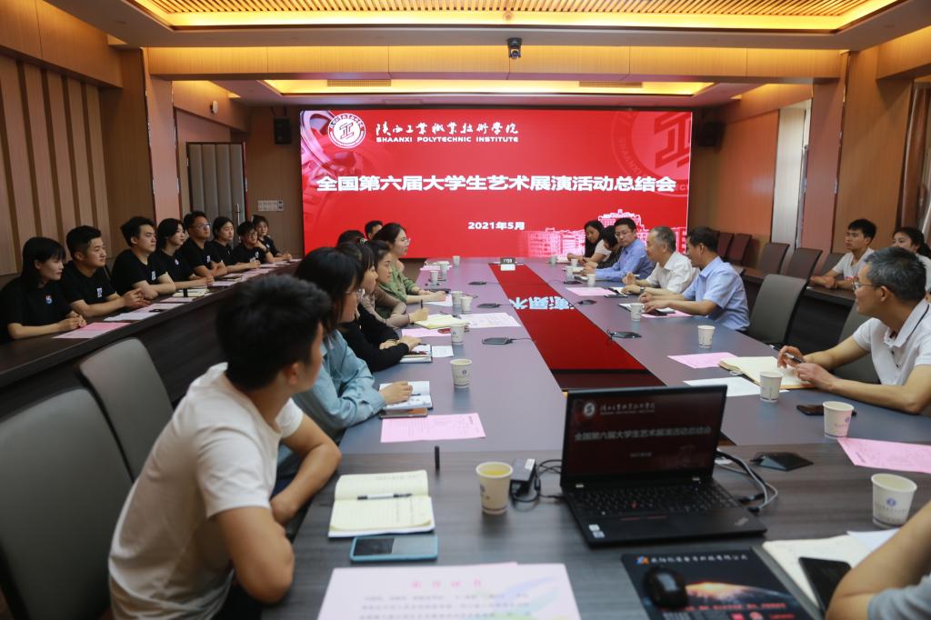 5月19日下午,我校在崇文南楼第一会议室召开全国第六届大学生艺术展演活动总结会。党委副书记贺天柱,学工部部长郝军、美育部部长付胜利、信息工程学院党总支书记闫军、土木工程学院党总支书记张科海、商贸与流通学院党总支副书记王艳、财经与旅游学院学工办主任杜娟、宣传部融媒体中心副主任焦蕾,美育部全体教师、参演学生代表参加了会议,会议由美育部部长付胜利主持。