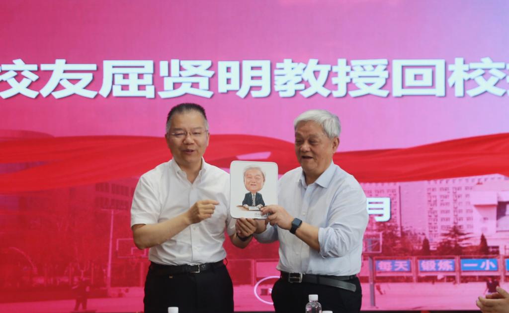 党委书记惠朝阳向屈贤明教授赠送礼品