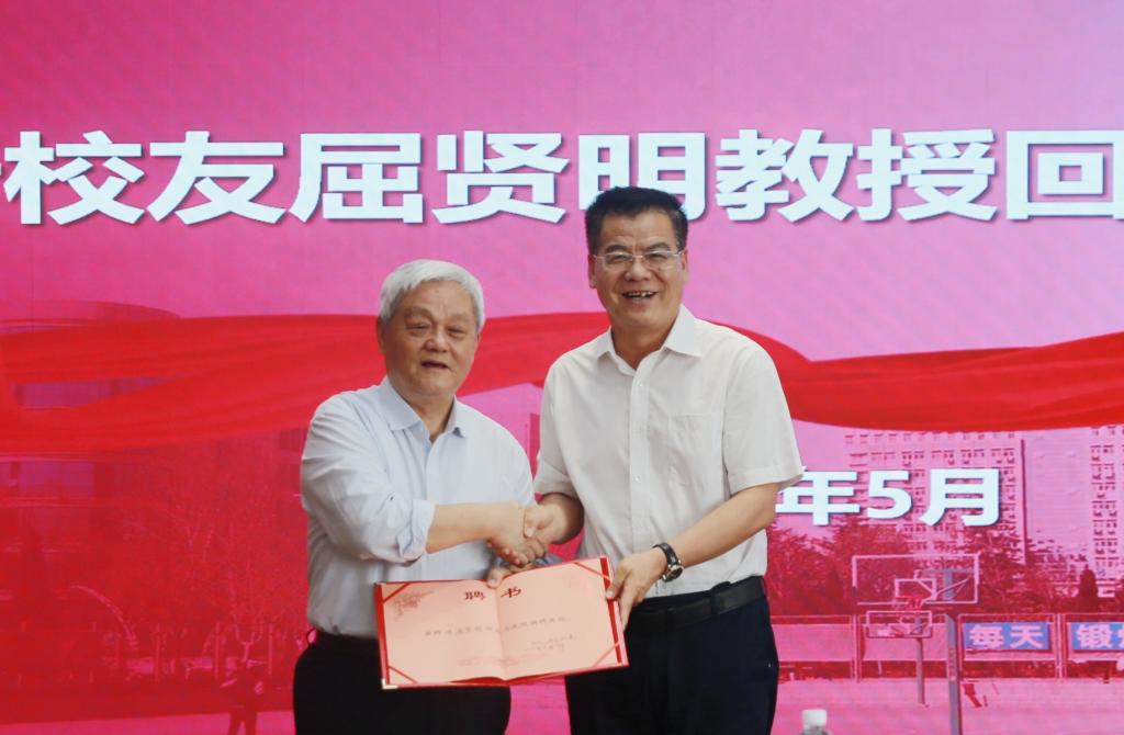 屈贤明教授对我校发展进行指导、提出建议