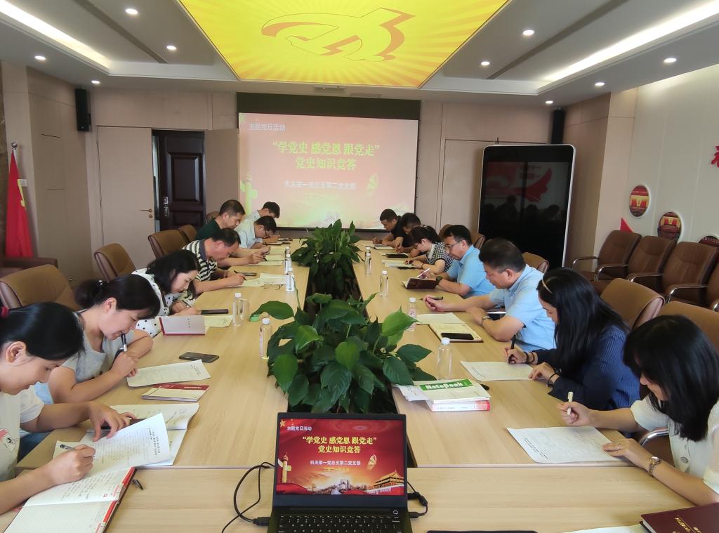 为扎实推进党史学习教育,引导全体党员切实做到学史爱党、学史爱国,5月28日上午,机关第一党总支第二党支部在崇文楼十层党员活动室,以党史知识竞答的方式开展“学党史 感党恩 跟党走”主题党日活动,支部全体党员参加了竞答活动。