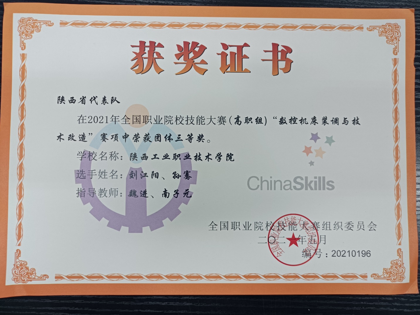 5月20-21日,2021年全国职业院校技能大赛高职组“数控机床装调与技术改造”赛项在山东省济南举行,共有来自全国27个省市自治区的代表队参加了本次比赛,我校由航空工程学院魏进、南子元两位老师指导的刘江阳、孙骞二位选手代表陕西省参赛。经过紧张激烈的角逐,最终荣获团体三等奖。