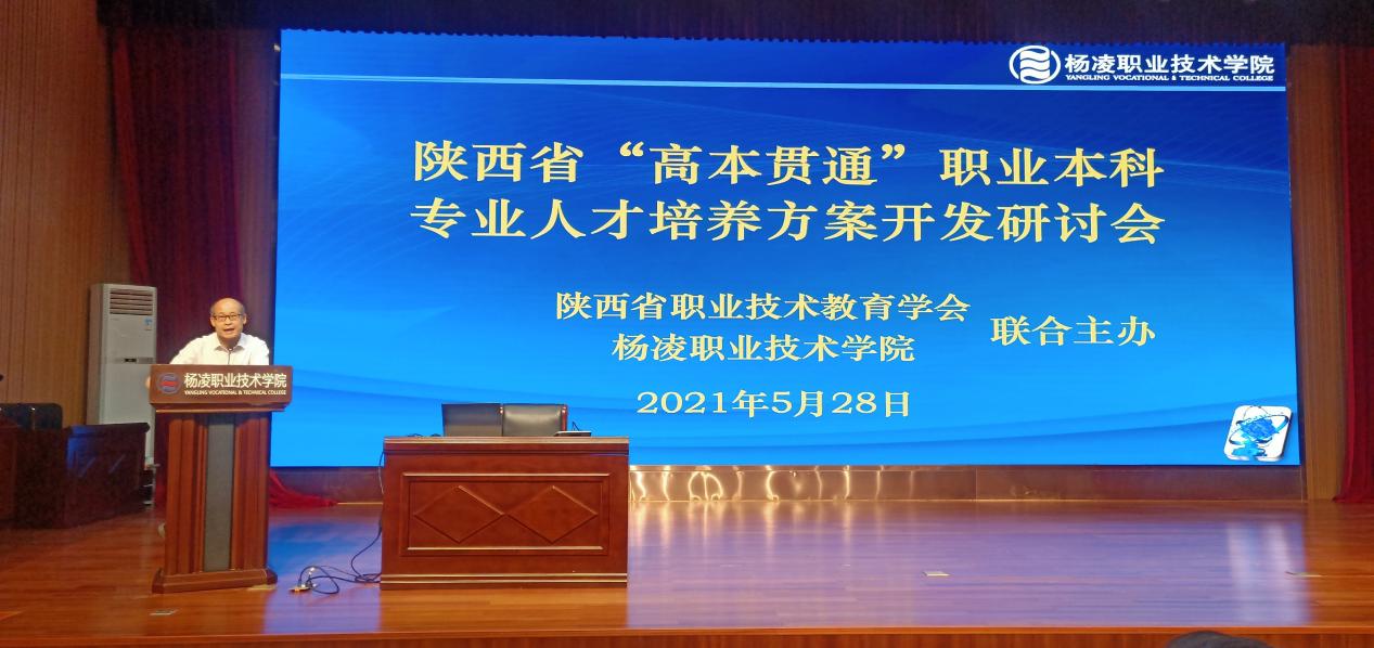 5月28日上午,由陕西省职业技术教育学会和杨凌职业技术学院联合主办的陕西省“高本贯通”职业本科专业人才培养方案开发研讨会在杨凌召开。国家督学、陕西省职业技术教育学会会长崔岩教授,副会长王晓江教授、秘书长杨建民教授、8所国家级“双高计划”建设院校主管领导、教务处长、相关二级学院负责人、专业带头人、骨干教师等90余人参加了研讨会。本次会议由陕西省职业技术教育学会副会长王晓江教授主持。