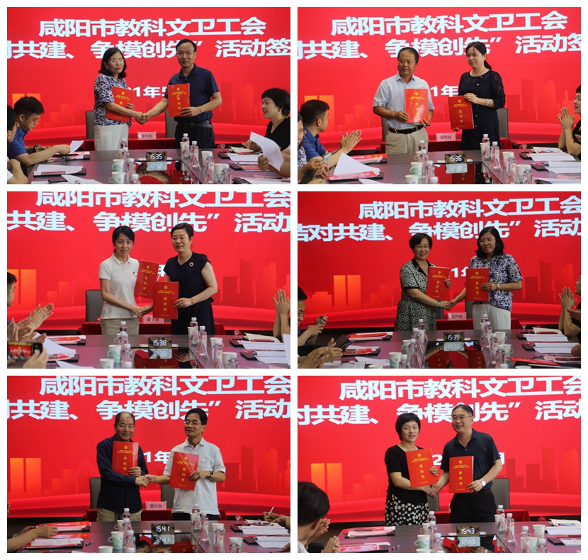 5月31日,咸阳市教科文卫工会“结对共建、争模创先”活动签约仪式在我校崇文楼九楼第一会议室举行。咸阳市总工会党组副书记、常务副主席张静,市教科文卫工会主席杨勇方,我校党委副书记田昊、工会主席张彬出席了启动仪式,来自陕财职院、陕能职院、咸阳职院、市中心医院、市农科院等17家高校、单位的工会主席和职工代表参加活动。