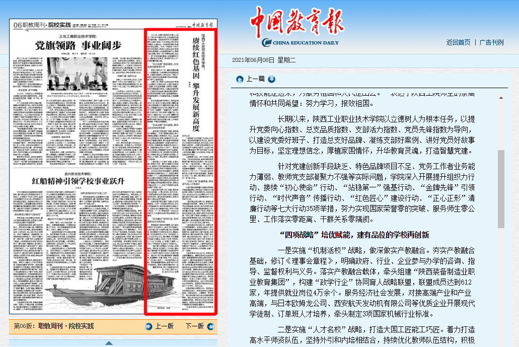 今日出版的《中国教育报》在其职教版刊发我校党委书记惠朝阳同志题为《星空网页版登录入口:赓续红色基因,攀升发展新高度》的署名文章,现全文转载如下: