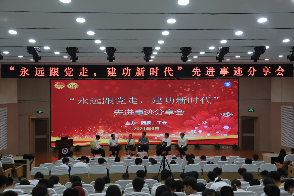 为庆祝中国共产党成立100周年,深入开展党史学习教育,集中展示新时代我校优秀校友听党指挥,不忘初心、砥砺奋斗、勇于担当的精神风貌,激励学生爱党爱国,弘扬工匠精神、劳模精神、劳动精神,奋勇建功立业,以优异成绩庆祝党的百年华诞。6月14日,由校团委、工会举办的“永远跟党走 建功新时代”先进事迹分享会在学术会堂举行。我校优秀校友,第25届中国青年五四奖章获得者何小虎、2020年全国劳动模范何菲、国际焊接大赛一等奖获得者靳虎平,“挑战杯”全国大学生课外学术科技作品红色专项赛一等奖获奖团队代表李美琪、杜宾与到场的400余名师生进行了分享交流。此外,本次活动还通过新媒体进行全程直播。