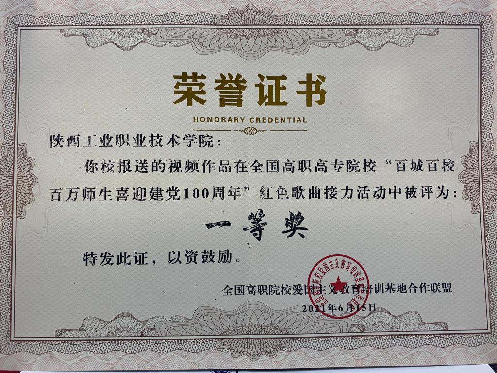 我校荣获全国高职高专院校“百城百校百万师生喜迎建党100周年”红歌接力活动一等奖