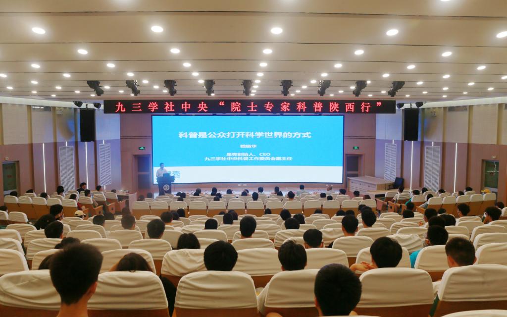 6月22日下午,九三学社中央“院士专家科普陕西行”科普讲座在我校学术会堂成功举办。九三学社中央科普工作委员会副主任,北京果壳互动信息技术有限公司首席执行官嵇晓华博士,九三学社省委社会服务部部长张雅宁、服务部副部长丁鹏飞、九三学社市委主委沙石、副主委张红梅、秘书长王献民,我校党委副书记田昊、九三学社支社社员以及师生代表200余人参加讲座,本次讲座由统战部部长王超联主持。