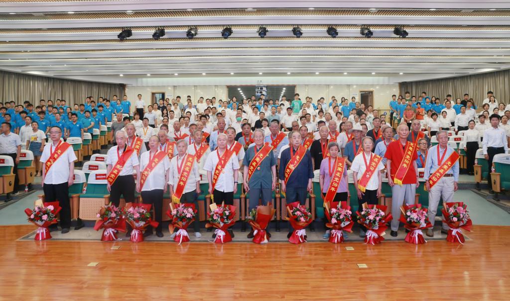 大会首先进行“光荣在党50年”纪念章颁发仪式。校长刘永亮同志宣读了荣获“光荣在党50年”纪念章党员名单,校领导惠朝阳、刘永亮、康强、刘清为老党员代表逐一佩戴纪念章,青年学生向老党员献花。“光荣在党50年”纪念章获得者代表周宪武同志作了满怀深情的发言,回顾了自身工作经历,表达了对党的深厚情感、对获得荣誉的光荣自豪和继续为党的事业增光添彩的坚定决心。樊胜军同志带领全体与会人员面向党旗宣誓,再次向党庄严承诺:在任何时候、任何地点、任何场合都不忘入党初心,永远坚定不移跟党走。