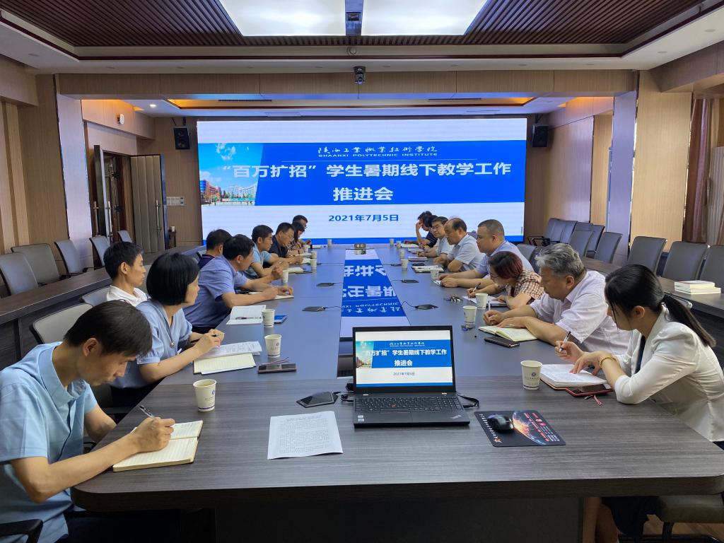 7月5日下午,我校组织召开2020-2021学年第二学期“百万扩招”学生暑期线下教学工作推进会,学校副校长梅创社出席并讲话,教务处、教育教学质量管理中心、各二级学院负责人参加了此次会议。会议由教务处处长张磊主持。