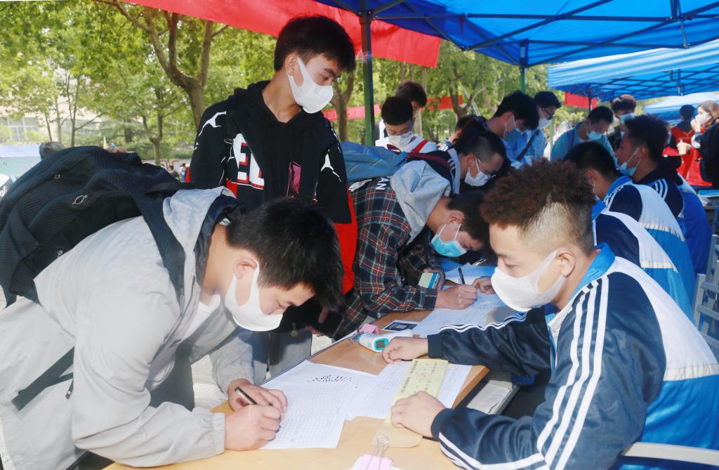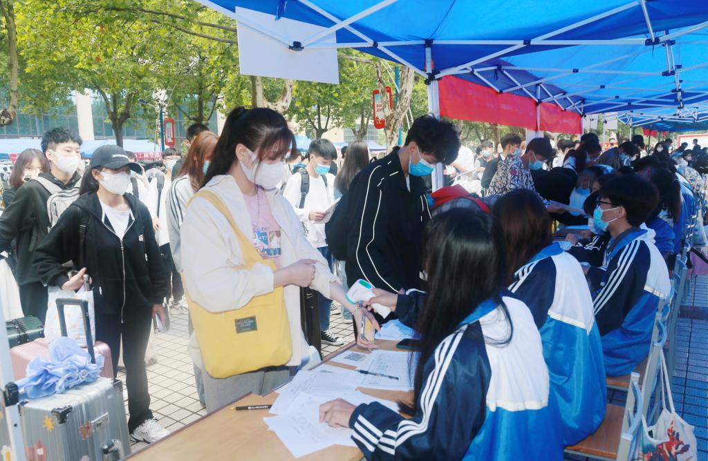 新生按防疫要求测温入校