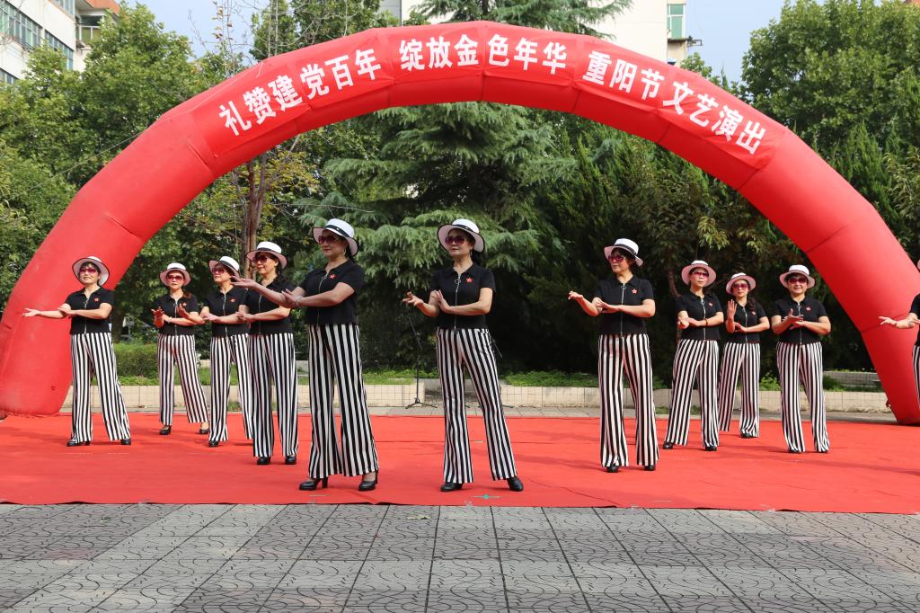 文艺演出以合唱《我和我的祖国》、《你是血脉我是血》开始,演出节目形式多样、丰富多彩,有柔力球表演《各族儿女心向党》、《没有共产党就没有新中国》;太极表演《太极拳精要十八式》、《武当太极剑》;舞蹈《万疆》、《灯火里的中国》;时装表演《动感的旋律》、《长鼓舞敲起来》等。最后,文艺演出在秦腔表演《屠夫状元》、《大家欢喜》中落下帷幕。精彩演出赢得了场下一阵阵热烈的掌声。