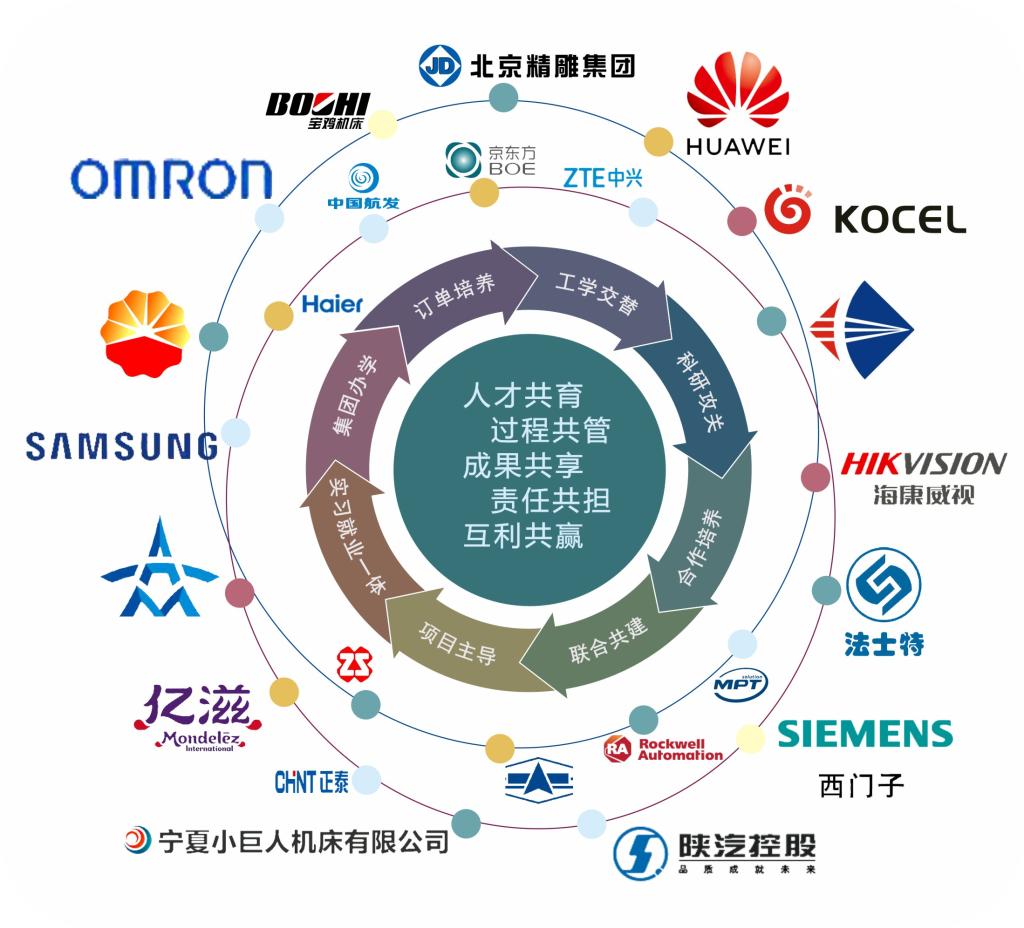 我校与国内外700余家大中型企事业单位倾力合作,探索形成多元投入、四方联动、理事会运行、资源共享、四合作育人机制为核心的集团化办学模式;率先试点现代学徒制,探索出“双主体四递进”的技能培养新路径,学校与企业共建学院、订单班培养、企业员工培训、合作开发课程等全面开花,产教共融,教育链、人才链、资源链和创新链的完整闭环基本形成,基地共建,人才共育,成果共享已成共识,学院首批入选全国示范职教集团(联盟)培育单位。以培养“德技双修”“一专多能”的大国工匠为目标,实施“高师带高徒”工程,建立名师工作室,引进工匠进校授课;搭建“双创”平台(西部创新创业研究院、众创空间)、开展“五方联动,四项融合,三链协同”的双创教育生态链建设;试点现代学徒制,携手省内外百余家国家级骨干企业及科研院所,优化提升基础实践教学条件,构筑起“校内实验实训基地—校办实习工厂—校外实训基地”三级配套的实践教学体系与“基础训练—仿真锻炼—实际操练”三层递进的学生能力培养机制,以“工匠精神”引领技能人才成长,工匠式的学生已成为学院叫得响的名片。