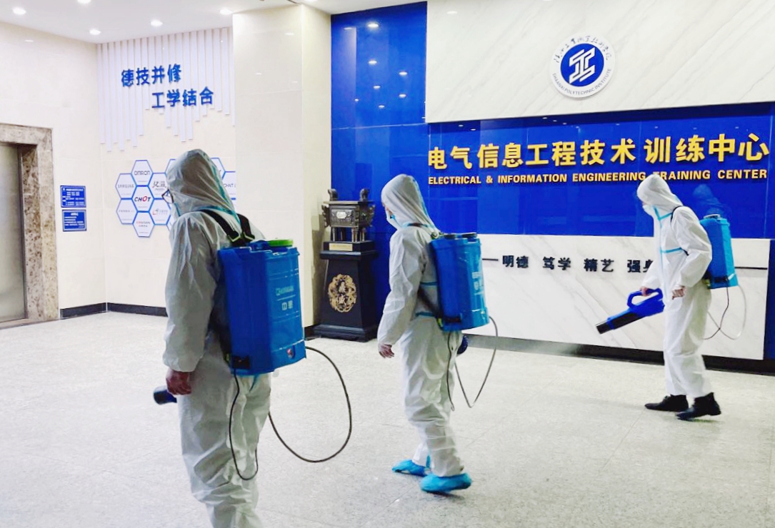 环境消毒到位。学校聘请专业消杀公司对全校45栋楼宇(家属楼29栋)及外围公共区域进行周期性消杀,做到全方位、全覆盖、无死角的环境卫生整治和通风消毒。对生活垃圾投放点、卫生间、电梯、食堂、超市等重点区域加大消杀频次,为坚决遏制疫情传播拉起了一道坚实有效的安全防护网。