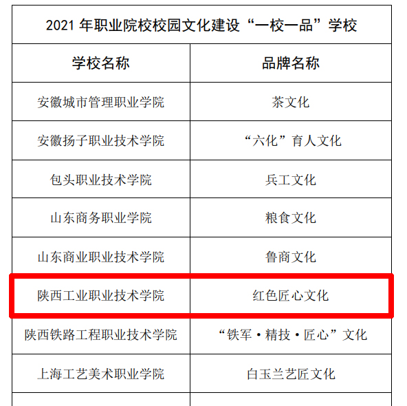 近日,教育部职业院校文化素质教育指导委员会公布2021年职业院校校园文化建设“一校一品”申报结果,我校荣获职业院校校园文化“一校一品”学校。