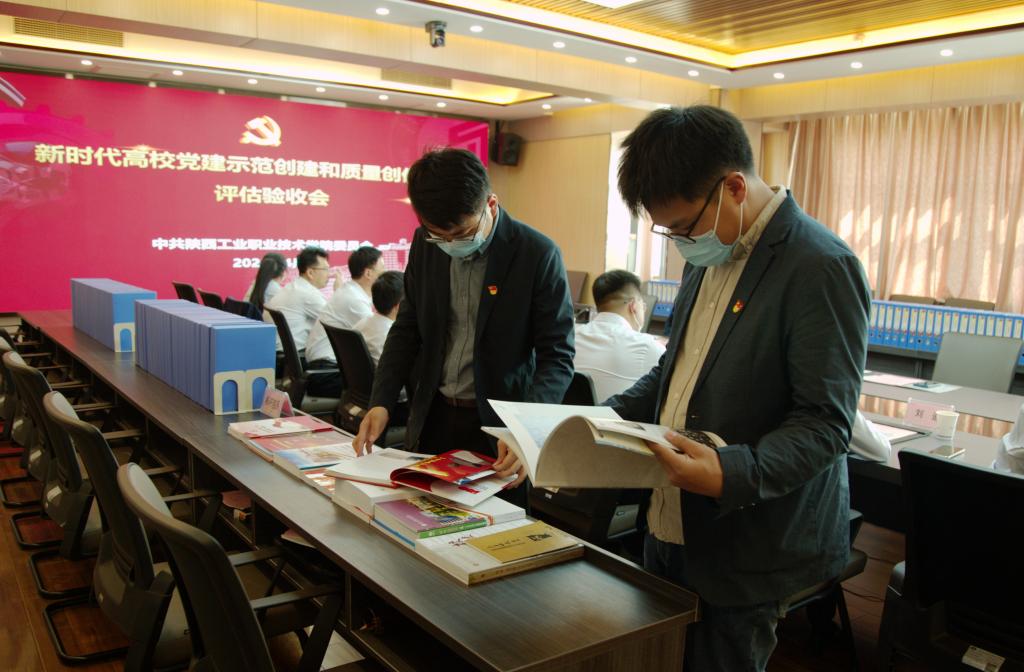 省委教育工委党建“双创”工作评估验收组现场查阅资料