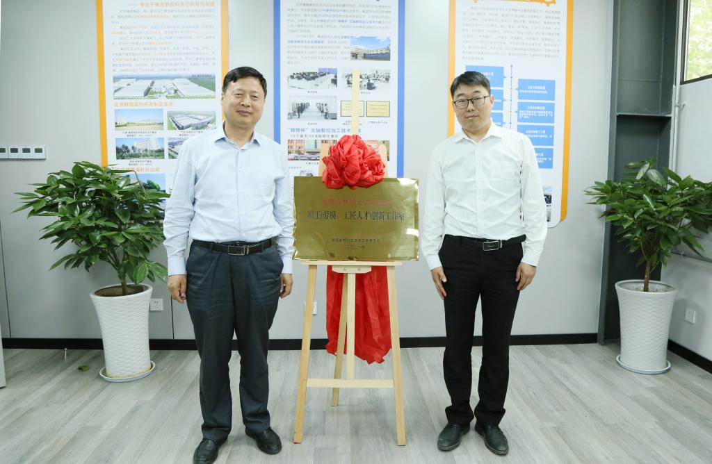陕西省教科文卫体工会主席徐富权为“梁晓哲智能制造职工创新工作室”授牌