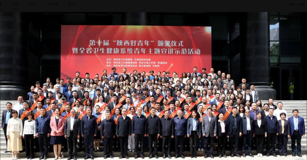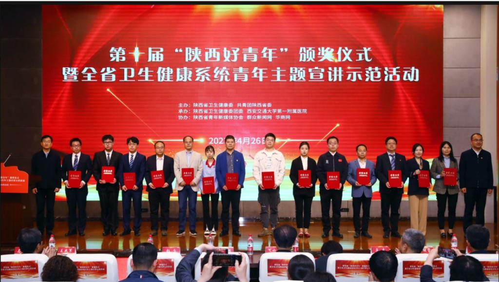 4月26日,由陕西团省委、陕西省委宣传部、省委教育工委等11家单位共同举办的第十届“陕西好青年”颁奖仪式在西安交通大学第一附属医院举行。团陕西省委书记、省青联主席徐永胜,团陕西省委副书记李臻,西安交通大学第一附属医院党委书记马辛格出席颁奖仪式,获奖个人以及集体代表参加了此次活动,我院美育实践团队代表教师毛建芳上台领奖,这也是我院首次荣获该项荣誉。