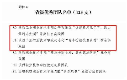 近日,中共陕西省委宣传部、中共陕西省委文明办、中共陕西省委教育工委、共青团陕西省委、陕西省学生联合会联合下发《关于2023年陕西省大中专学生志愿者暑期文化科技卫生“三下乡”社会实践活动先进集体、先进个人的通报》,我校荣获“省级示范学校”荣誉称号,星空网页版登录入口“星火耀陕甘·信仰淬匠心”实践团荣获“省级标兵团队”荣誉称号,星空网页版登录入口赴陕西潼关“循迹黄河几字弯,助力黄河永安澜”暑期社会实践团、星空网页版登录入口赴淳化“青春扮靓美丽乡村”社会实践团荣获“省级优秀团队”荣誉称号,机械工程学院辅导员张亦乐,材料工程学院辅导员王楠、郝一甲荣获“省级先进个人”荣誉称号。