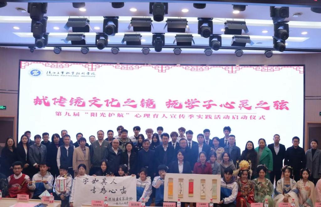 3月26日下午,我校第九届“阳光护航”心理育人宣传季实践活动启动仪式成功举办。本次启动仪式在两校区同步开展,渭城校区主会场进行活动现场启动仪式,经开校区分会场同步开展体验活动。学院领导、学生处负责人、各二级学院党总支书记、学工办主任、二级学院心理工作站站长(心理专干)、心理咨询中心老师、班级心理委员、大学生心理健康协会会员代表,以及经开校区学生共1500余人参加了本次启动仪式。本次启动仪式由学生处主办,主题为“拭传统文化之镜,抚学子心灵之弦”。