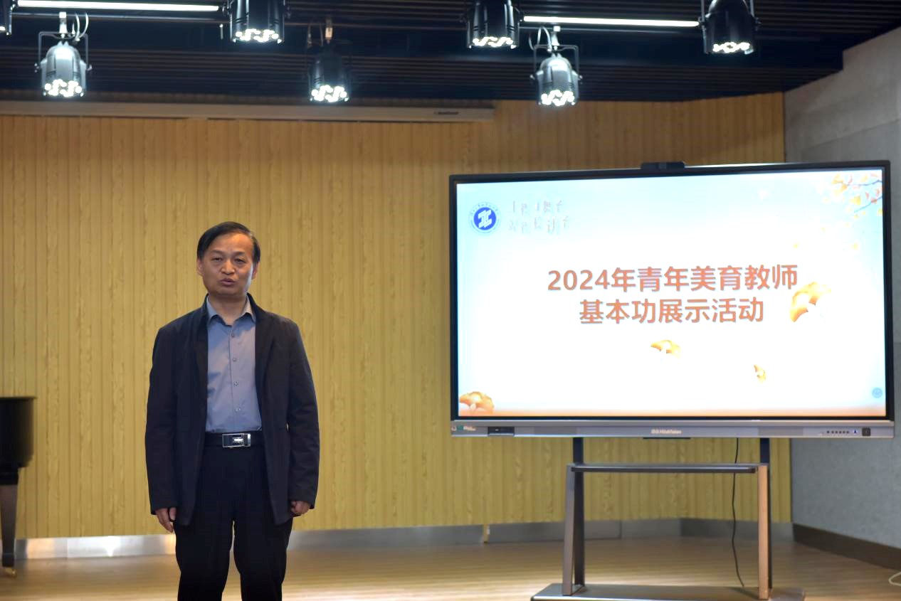 首先由美育部部长付胜利教授致辞,他介绍了本次展示活动的主题与意义。青年美育教师基本功展示活动以“上得了舞台,站得稳讲台”为主题,设置有教学能力展示和艺术专业能力展示两个模块,促进青年教师扑下身子,夯实基础,善于学习,勤于思考,勇于进取,成为上得了舞台的艺术名家和站得稳讲台的美育名师。